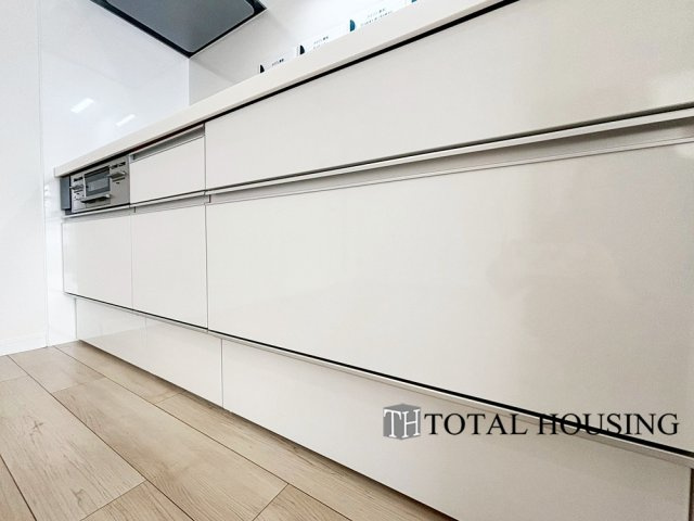 LDKを広く使え、料理に集中することができる壁付けタイプのキッチンです。上下に収納が設けられ、調理用品や食器類をすっきりと収納できます◎
